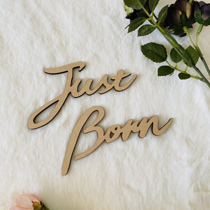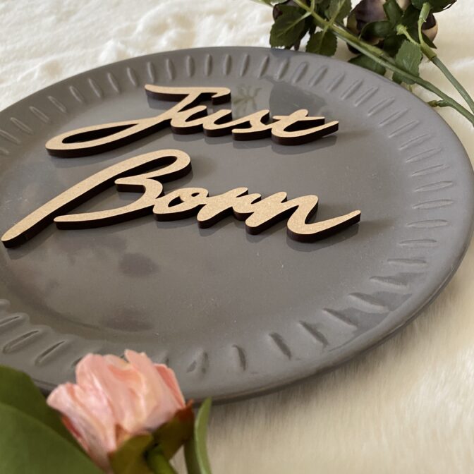 木製 JustBorn ニューボーンフォト レターバナー ウッドレター 筆記体 おしゃれ