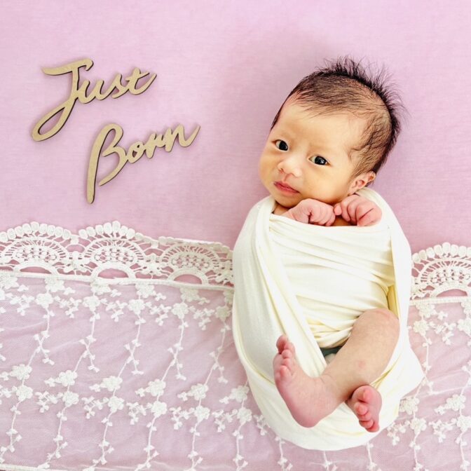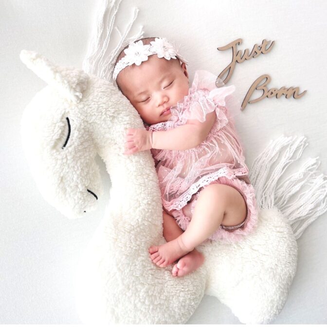 赤ちゃんのニューボーンフォトに使える木製JustBornです♪
