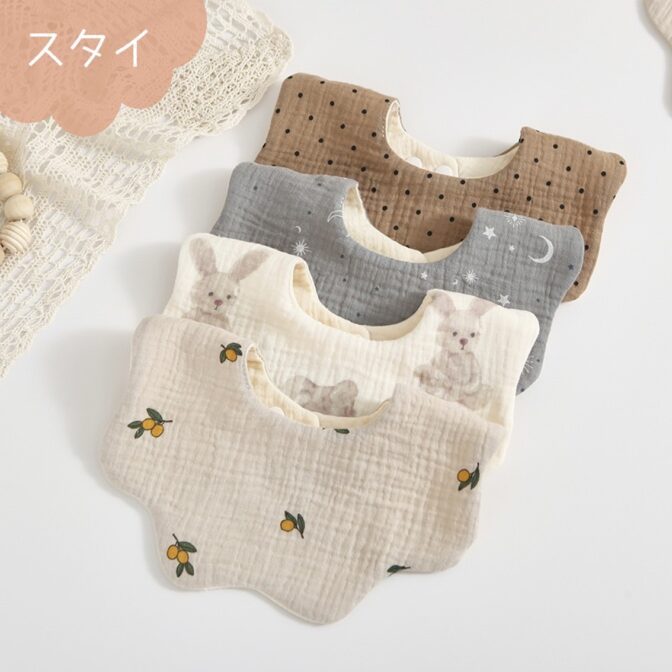 【B】赤ちゃん スタイ 4枚セット 韓国 お食事エプロン ベビー 吸水 可愛い 女の子 男の子 安い