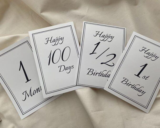 月齢フォトやマタニティフォトの撮影用のマンスリーカード15枚です。 シンプルなデザインなので男女問わずお使いいただけます 【セット内容】 •Just Born •1Month •2Months •3Months •Happy100days •4Months •5Months •6Months •1/2Birthday •7Months •8Months •9Months •10Months •11Months •Happy1Birthday ※フレームはつきません 【商品説明】 サイズ•••148mm×100mm 厚さ•••0.18mm(最厚口) 材質•••上質紙(普通紙) 《注意事項》 ※発送方法について 普通郵便にて発送致します。 お届けまで約3-5日程度となります(土日祝は除く)