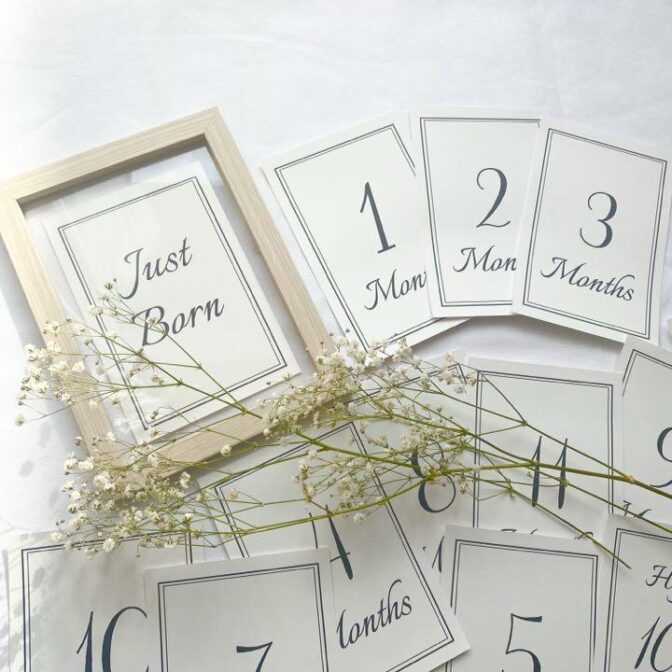 シンプルなマンスリーカード 月齢フォト ニューボーンフォト マタニティフォト