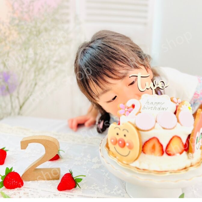 two 木製 ケーキトッパー 2歳 誕生日 バースデー 飾り 数字 装飾 記念日 グッズ